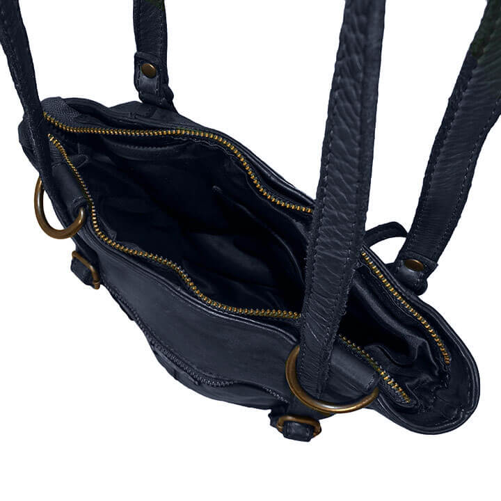 Door een simpele handeling met de schouderband kunt u van de tas een shopper of een rugzak maken. De schouderband is verstelbaar, doordat de schouderband verstelbaar is kunt u de tas altijd op de gewenste lengte dragen. De tas heeft een ruim hoofdvak met ritssluiting, in het hoofdvak zit een binnenvak met ritssluiting en een smartphonevakje. Ook heeft de tas een voor- en achtervak met ritssluiting. Door deze handige vakindeling is de tas ideaal in gebruik. De tas is 27 x 25 x 11 cm.