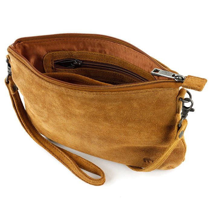 Bear Design Suède Schoudertas / Clutch Julie Cognac