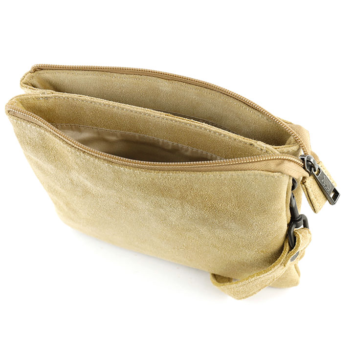 Compact suède schoudertasje van Bear Design met handig hoofdvak, interne vakjes en verstelbare schouderband. Licht, stijlvol en perfect voor dagelijks gebruik.