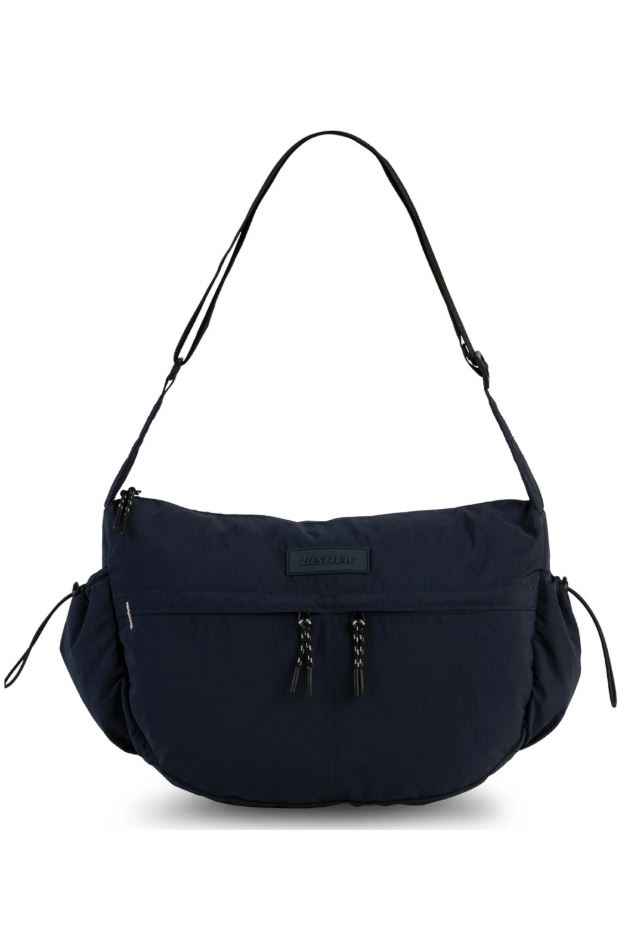 Aan de buitenkant bevinden zich twee zijvakken met trekkoord en twee voorvakken met ritssluiting voor snelle toegang tot belangrijke spullen.Dankzij de verstelbare schouderband draag je de tas comfortabel op jouw manier.