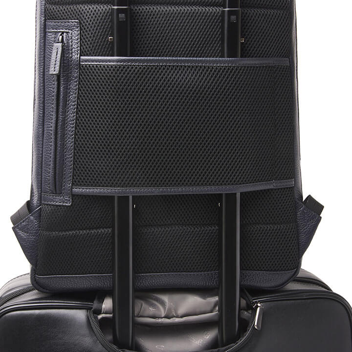 Het hoofdvak sluit met een doorlopende ritssluiting, hierdoor kunt u gemakkelijk bij uw spullen in het hoofdvak. In het hoofdvak vindt je een gewatteerd laptopvak 15.6”, een gewatteerd tabletvak, een smartphonevakje, een ritsvak en een RFID ritsvak. Door de RFID protectie in het RFID ritsvak kunnen uw pasjes niet uitgelezen worden. Dit is tegenwoordig onmisbaar nu contactloos betalen een belangrijk onderdeel is van onze betaalmethode. Op de achterzijde zit een smart sleeve, hiermee kunt u de rugzak bevestigen aan een trolley.