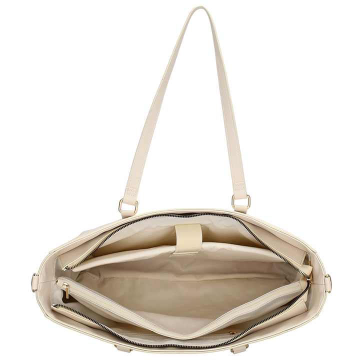 De tas beschikt over een ruim hoofdvak met ritssluiting. Intern heeft de tas een verdeler met ritssluiting, een binnenvak met ritssluiting en een gewatteerd laptopvak 15.6” met ritssluiting. De tas heeft 2 handvatten en een lange schouderband, hierdoor kunt u de tas dragen als handtas en als schoudertas. De schouderband is afneembaar en verstelbaar, hierdoor kunt u de tas ook altijd op de gewenste lengte dragen. De tas is 38 x 31.5 x 13 cm.