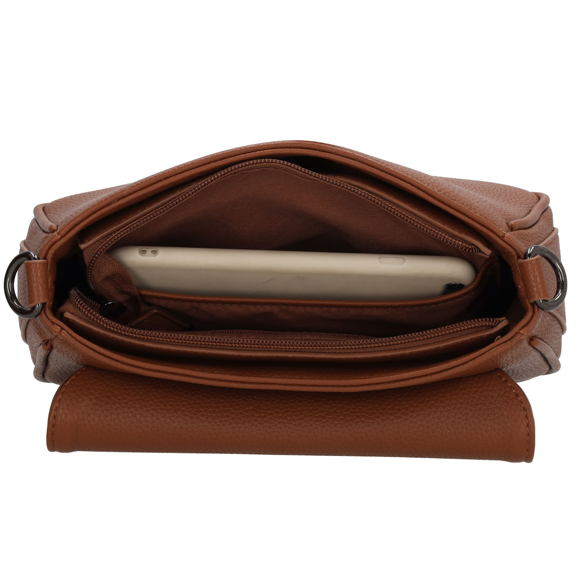 Het model is voorzien van een overslag met klep, wat zorgt voor een stijlvolle uitstraling en extra bescherming van je spullen.Binnenin beschikt de tas over een ritsvak en een telefoonvak, zodat je je essentials overzichtelijk kunt opbergen.