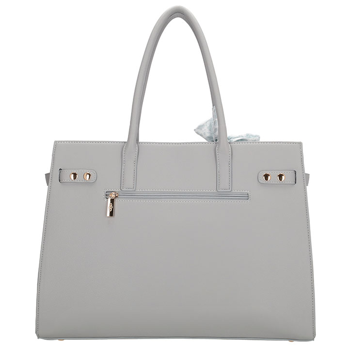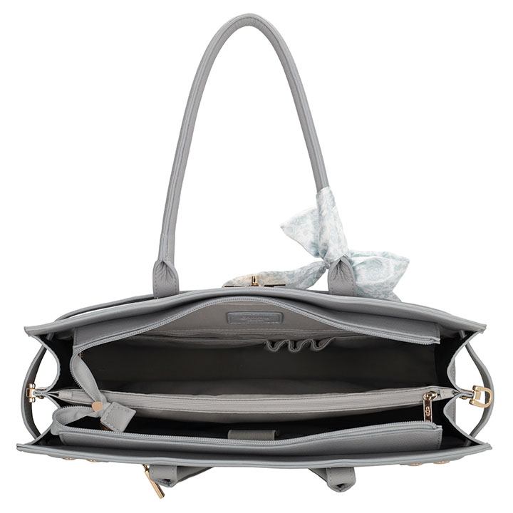 Aan de achterzijde is een ritsvak aanwezig voor spullen die je snel wilt pakken.De tas is afgewerkt met een stijlvol gespdetail op de voorkant en een speels afneembaar sjaaltje, wat zorgt voor een vrouwelijke en modieuze uitstraling.