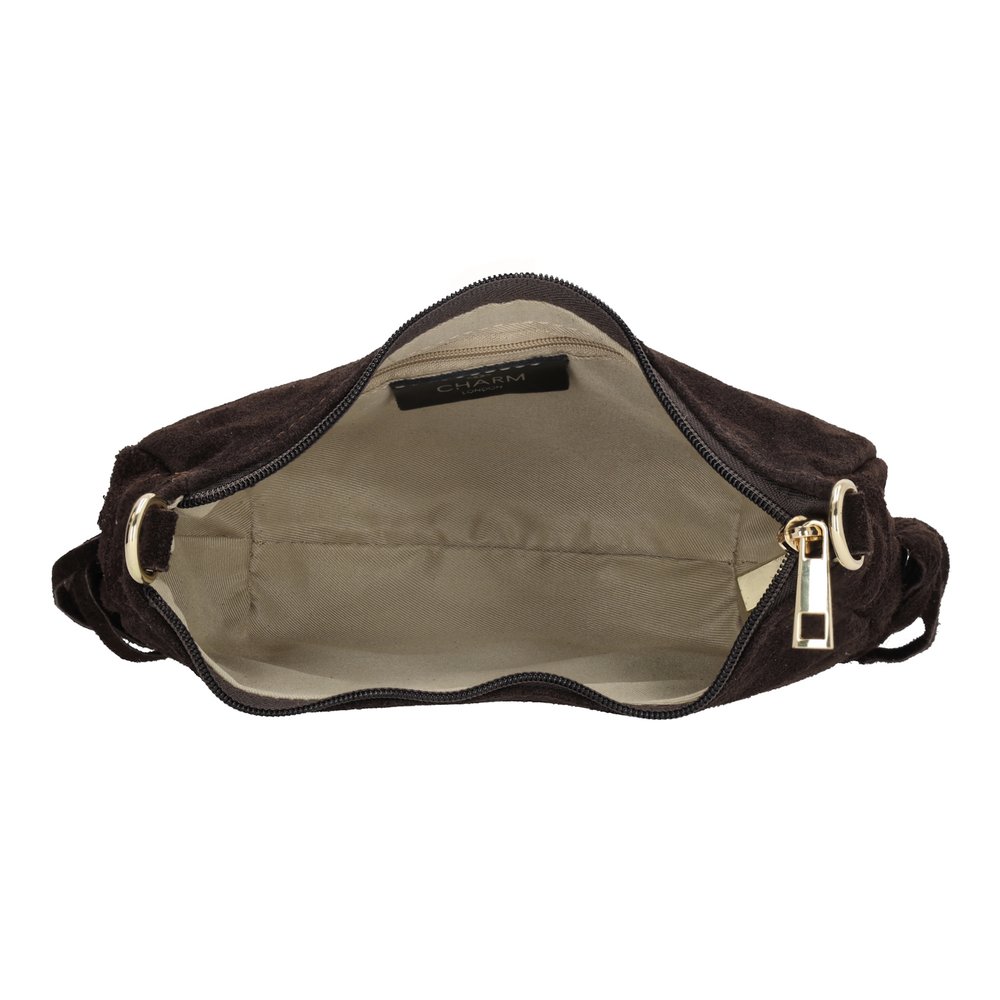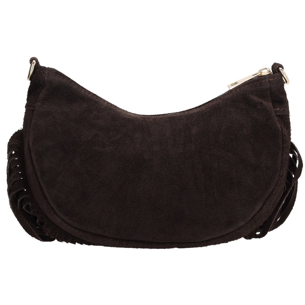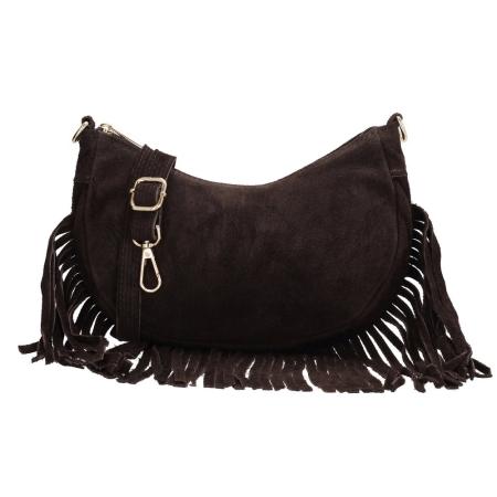 Charm London Suède Schoudertasje met Franjes Elisa Donkerbruin