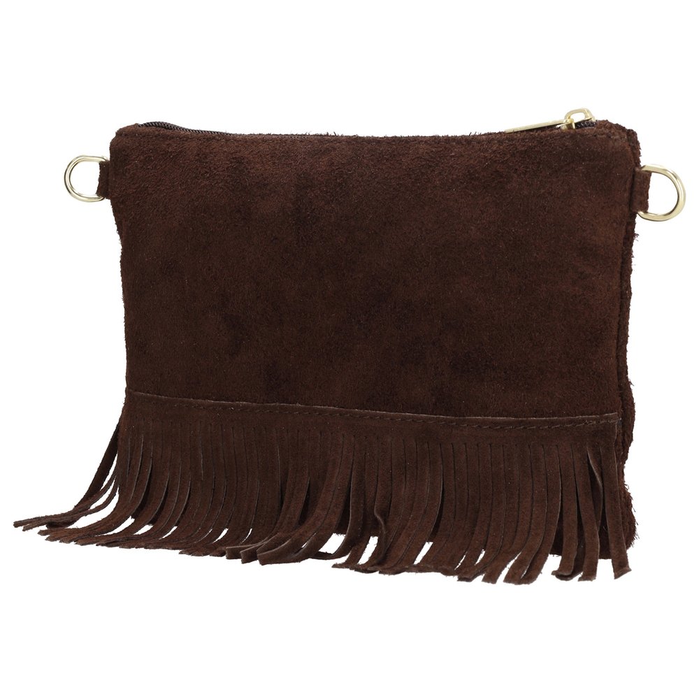 Charm London Suède Schoudertasje met Franjes Elisa Donkerbruin
