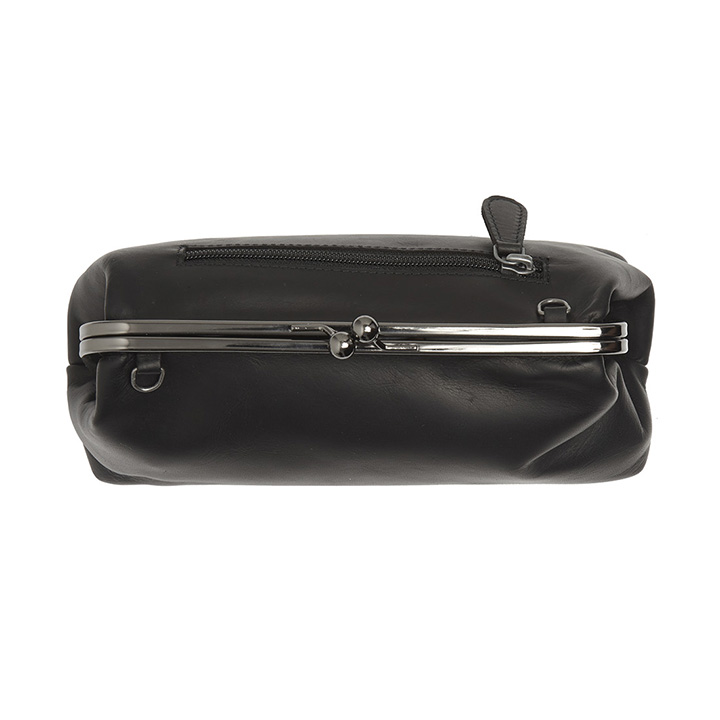 De tas heeft een hoofdvak met beugesluiting en een achtervak met ritssluiting. Intern heeft de tas een steekvak en een binnenvak met ritssluiting. Door de meerdere vakken van de tas kunt u gemakkelijk uw spullen gescheiden houden. De schoudertas heeft een afneembare en verstelbare schouderband, hierdoor kunt u de tas altijd op de gewenste lengte dragen. Ook zit bij de tas een afneembaar polsbandje, hierdoor kan de tas als clutch gedragen worden. De tas is 23 x 14 x 8 cm.