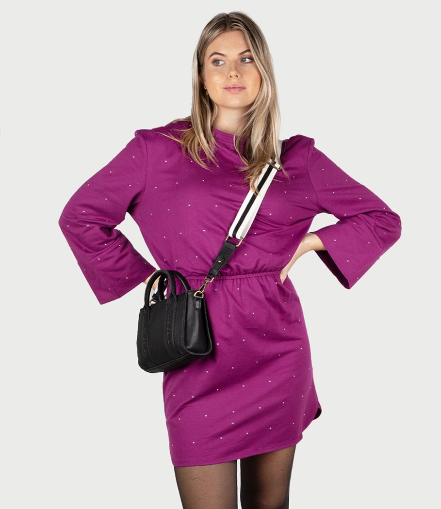 De tas beschikt over een lange schouderband die afneembaar en verstelbaar is, doordat de schouderband verstelbaar is kunt u de tas altijd op de gewenste lengte dragen. Ook heeft de tas op de bovenzijde 2 handvatten. De tas beschikt over een hoofdvak met ritssluiting. Intern heeft de tas een ritsvak en een steekvakje. De afmetingen van de tas zijn 18.5 x 15 x 8 cm.