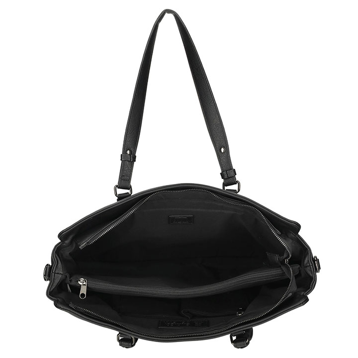 Het hoofdvak wordt gesloten met een ritssluiting. In het ruime hoofdvak zitten twee insteekvakjes en een vak met ritssluiting, ook zit in het hoofd een gewatteerd laptopvak 15”. Naast het hoofdvak heeft de shopper een voor- en achtervak met ritssluiting. De afmetingen van de tas zijn 40 x 32 x 10 cm.