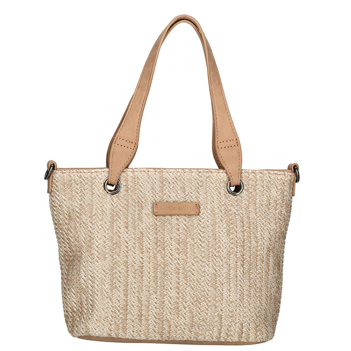 Prachtige dames handtas / schoudertas uit de Summer serie van Enrico Benetti. De tas is gemaakt van raffa riet. De tas is subtiel afgewerkt met het Enrico Benetti logo. De tas beschikt over een verstelbare en afneembare schouderband, doordat de schouderband verstelbaar is kunt u de tas altijd op de gewenste lengte dragen. Naast de schouderband heeft de tas ook 2 handvatten, hiermee kunt u de tas in de hand dragen. Doordat de tas een schouderband en 2 hengsels heeft kunt u de tas op verschillende manieren dragen.