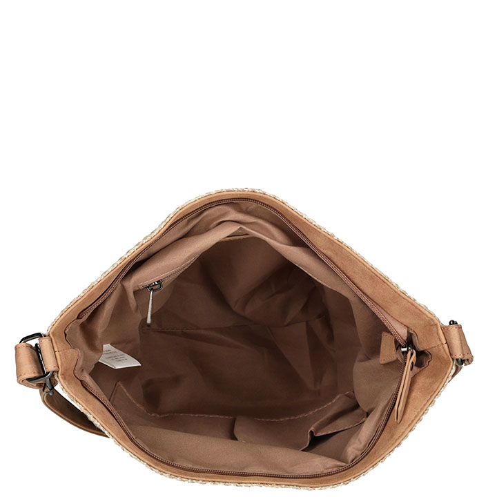 Prachtige schoudertas uit de Summer serie van Enrico Benetti. De tas is gemaakt van raffa riet. De tas is subtiel afgewerkt met het Enrico Benetti logo. De tas beschikt over een verstelbare schouderband, doordat de schouderband verstelbaar is kunt u de tas altijd op de gewenste lengte dragen. Op de bovenzijde heeft de tas een ruim hoofdvak met ritssluiting. Intern heeft de een binnenvak met ritssluiting, een steekvakje en een smartphonevakje.