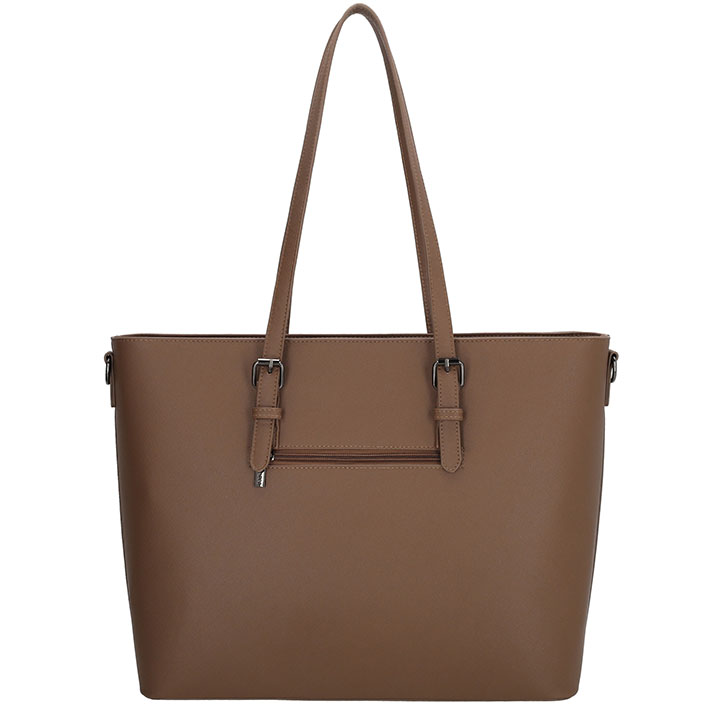 De tas beschikt over een ruim hoofdvak en achtervak met ritssluiting. Intern heeft de tas een smartphonevakje, een binnenvak met ritssluiting en een gewatteerd laptopvak 15.6” met ritssluiting. De tas heeft 2 handvatten en een lange schouderband, hierdoor kunt u de tas dragen als handtas en als schoudertas. De schouderband is afneembaar en verstelbaar, hierdoor kunt u de tas ook altijd op de gewenste lengte dragen. De tas is 44 x 31 x 14 cm.