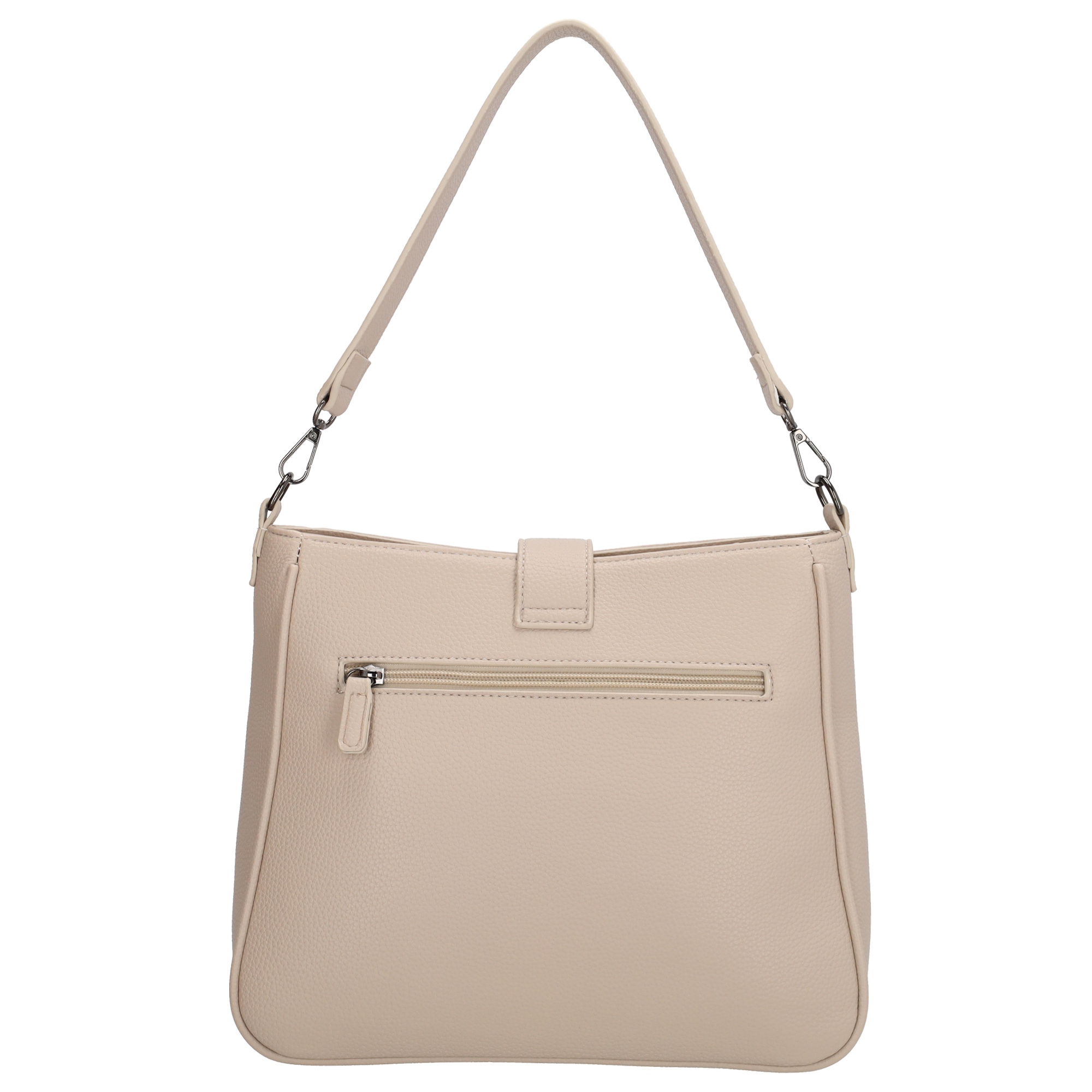 Het hoofdvak sluit met een ritssluiting en wordt extra afgewerkt met een lipje met gesp en magneetsluiting, wat zorgt voor een elegante en veilige afwerking.