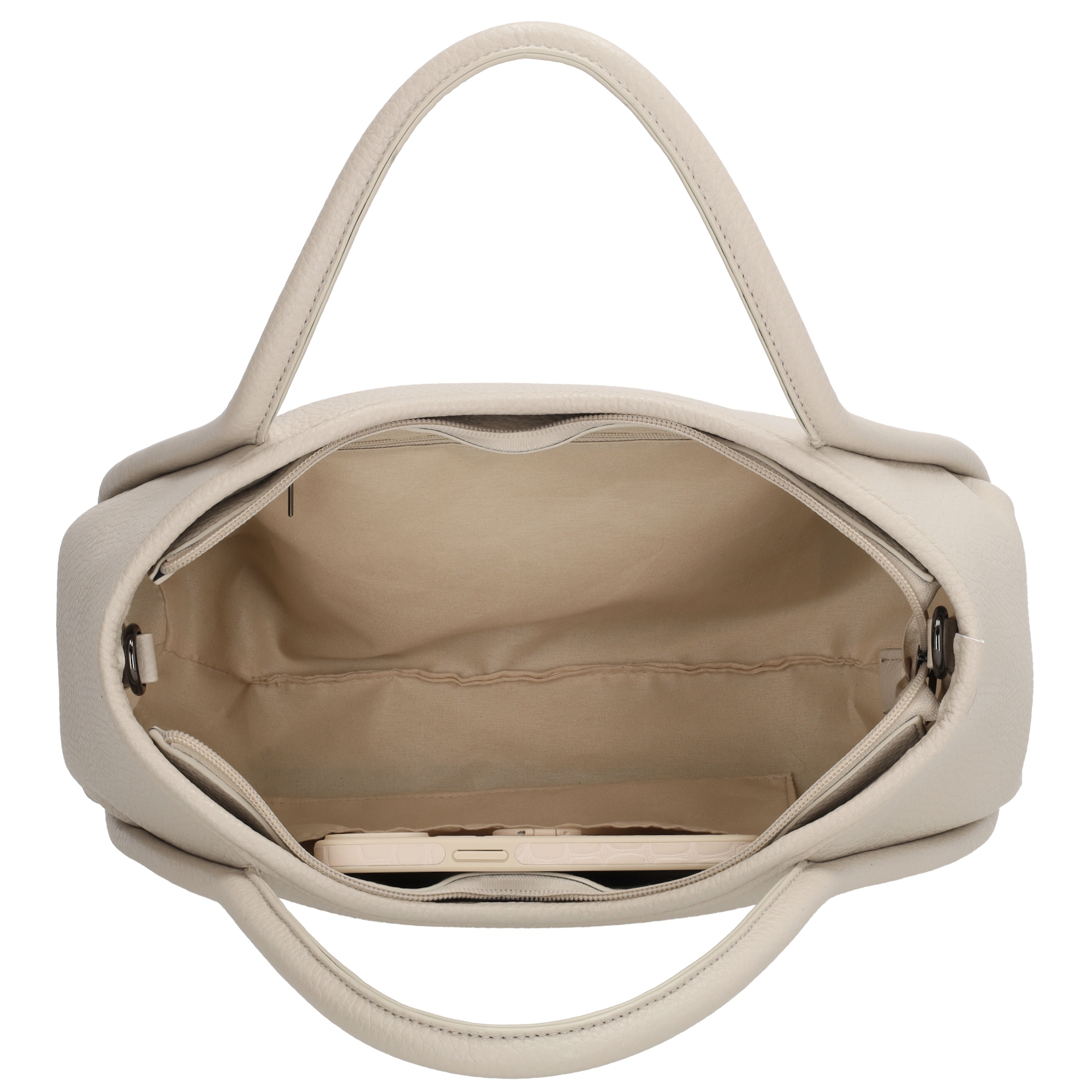 De tas heeft twee stevige handvaten waarmee je deze tas comfortabel in de hand kunt dragen.Binnenin beschikt de tas over een ritsvak en een telefoonvak, zodat je je essentials overzichtelijk kunt opbergen.