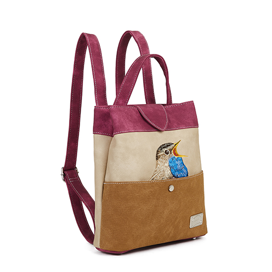 Met de Song Song Blue tas van Hi-di-hi haal je gegarandeerd een vrolijke en praktische tas in huis. Het prachtig geborduurde blauwborstje zingt zijn vrolijke lied terwijl je deze tas comfortabel aan je schouder draagt of moeiteloos transformeert in een rugzak door simpelweg aan de schouderband te trekken. Ideaal wanneer je het gewicht wilt verdelen of op de fiets naar huis gaat na een dagje stad.