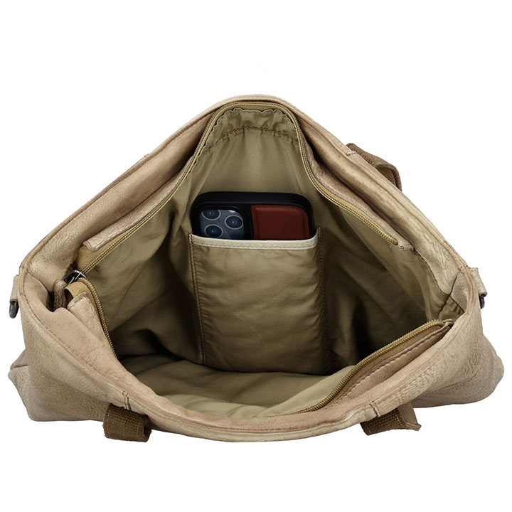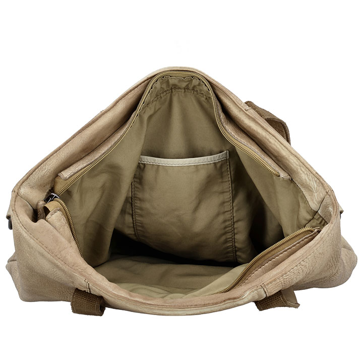 Op de bovenzijde heeft de tas het hoofdvak met ritssluiting. Intern heeft de tas een steekvak en een binnenvak met ritssluiting. Ook heeft de tas een steekvak op de achterzijde. Door de vakindeling is de tas praktisch in gebruik en kunt u gemakkelijk uw spullen gescheiden meenemen. Het formaat van de tas is 37 x 35 x 8 cm.