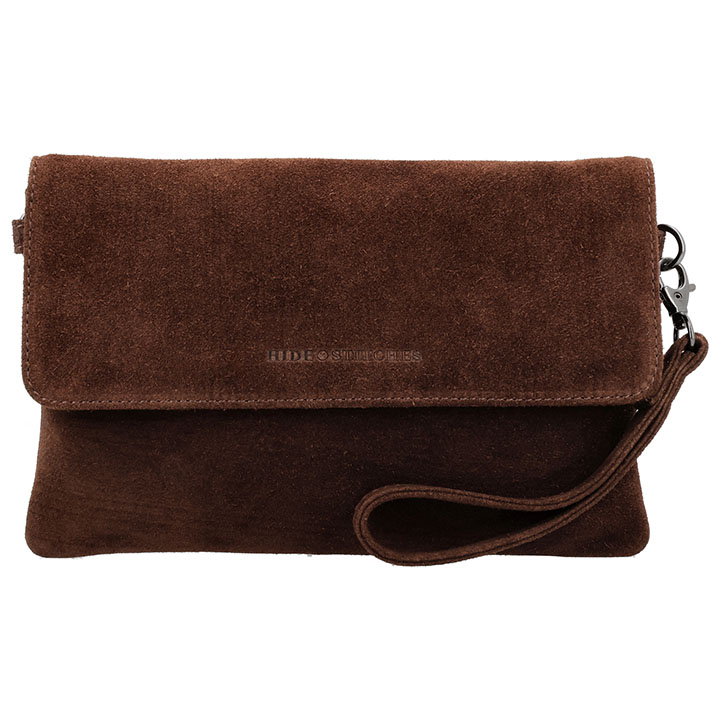 Hide & Stitches Suède Clutch/Schoudertas Brazos Donker Bruin