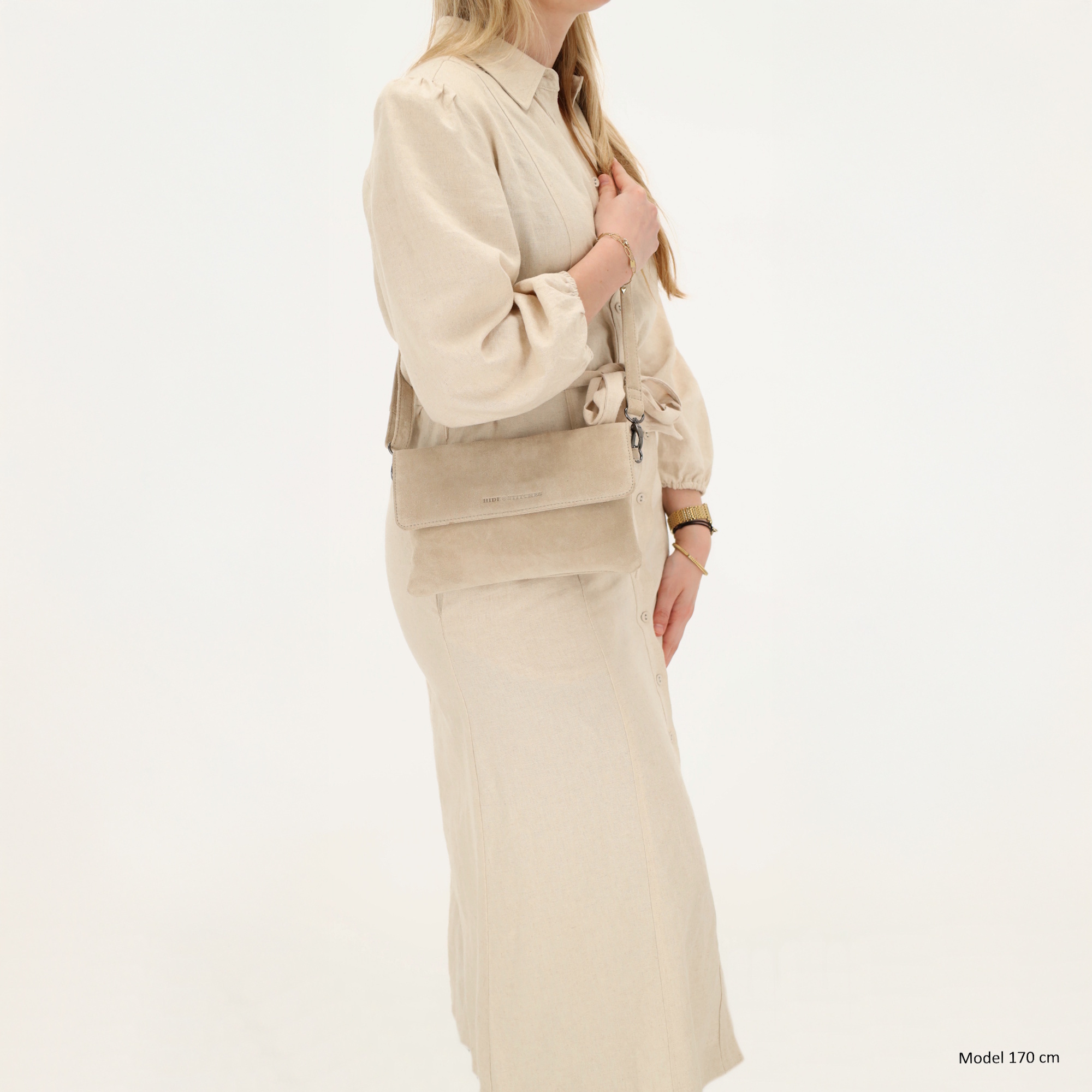 Hide & Stitches Suède Clutch/Schoudertas Brazos Zand