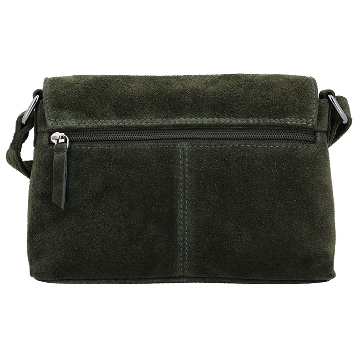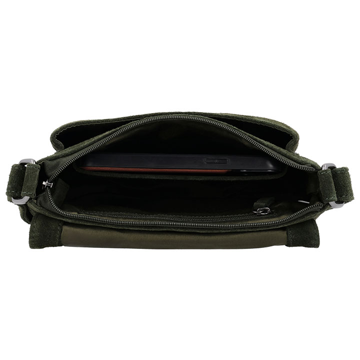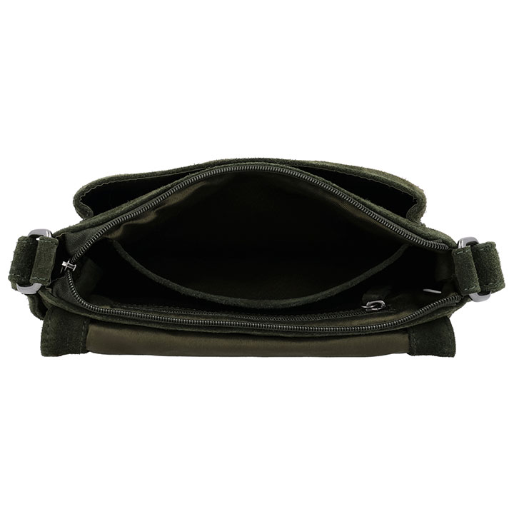 Hide & Stitches Suède Schoudertas met Overslag Brazos Olijf