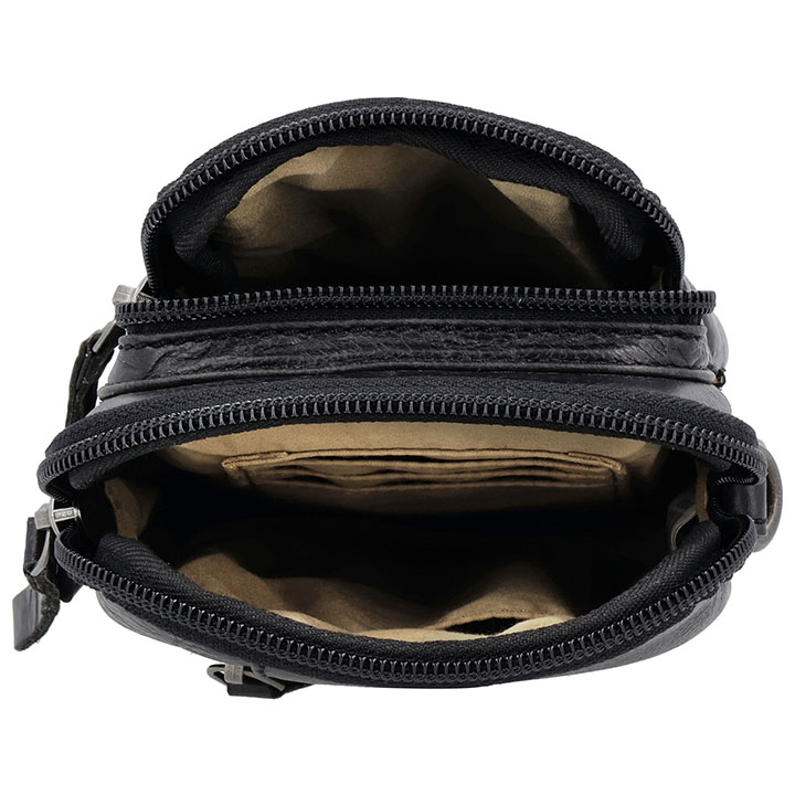De tas heeft een ruim hoofdvak, voorvak en achtervak met ritssluiting. Intern heeft de tas een prachtige interne indeling met een steekvak en 3 creditcardvakjes. Door deze vakindeling kunt u gemakkelijk uw spullen gescheiden opbergen in de tas. Bij de tas worden 2 verschillende afneembare en verstelbare schouderbanden, doordat de lange schouderbanden verstelbaar zijn kunt u de tas altijd op de gewenste lengte dragen. 1 schouderband is gemaakt van effen leer en de andere schouderband heeft een Next Navajo print wat de een gave unieke look geeft. De afmeting van de tas is 12 x 19 x 5 cm.