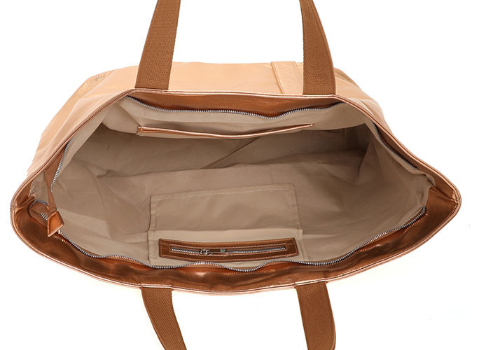 De tas heeft een ruim hoofdvak en een achtervak met ritsluiting, ook heeft de tas een steekvak op de voorzijde. Intern heeft de tas een steekvak, en een binnenvak met ritssluiting. De tas kunt u dragen met de 2 handvatten, hierdoor kan de tas in de hand gedragen worden of kort over de schouder. De afmeting van de tas is 60 x 34 x 18 cm.