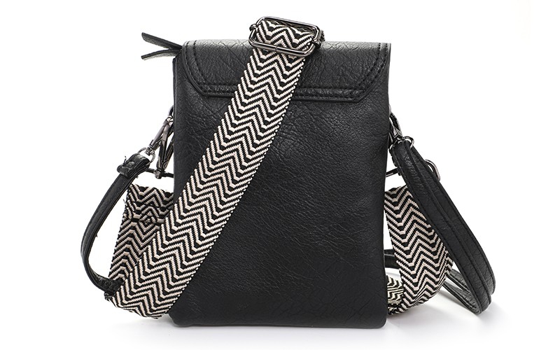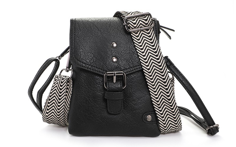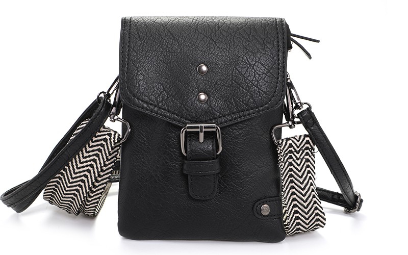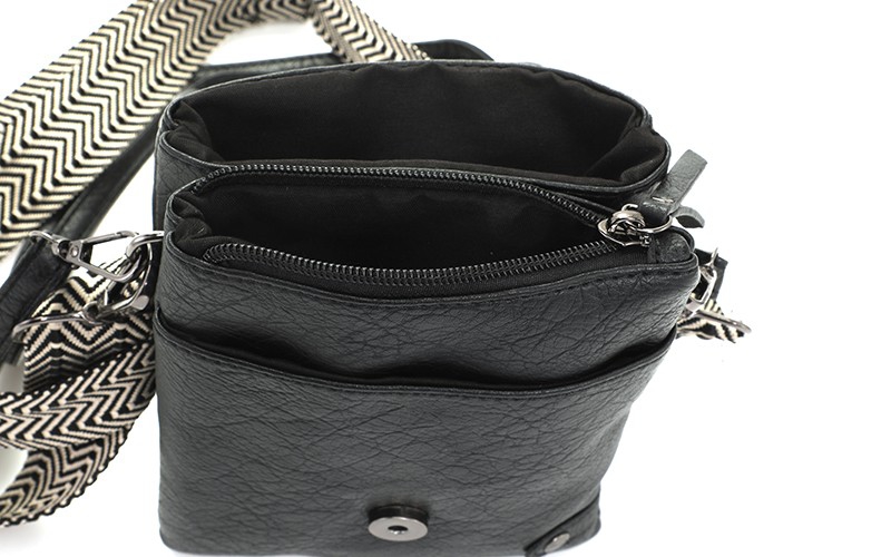 De tas heeft onder de overslag met magneetsluiting een ritsvak en 3 steekvakken. De afmeting van de tas is 14.5 x 19 x 4 cm.