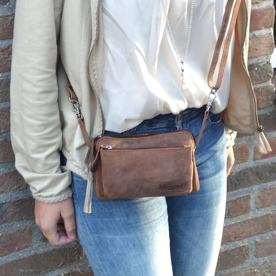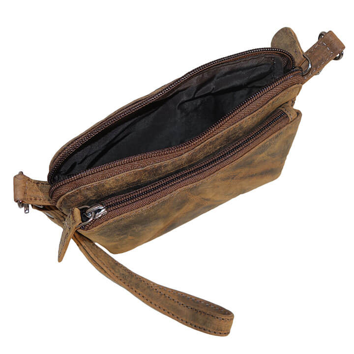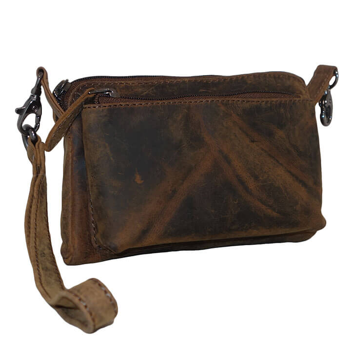 Leather Design Leren Clutch / Schoudertasje / Heuptasje Bruin