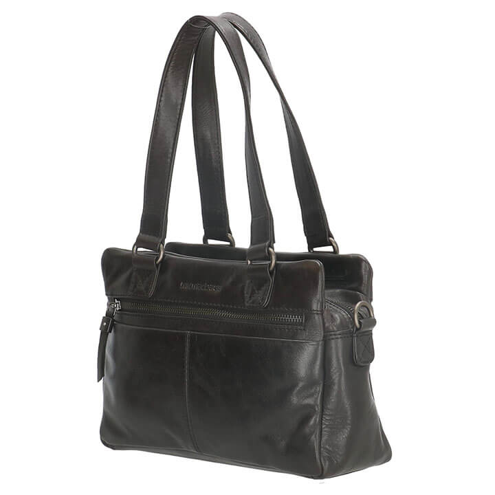 De tas heeft op de bovenzijde 3 vakken met ritssluiting. Intern heeft de tas een smartphonevakje en een binnenvakje met ritssluiting, handig voor de wat kleinere spullen. Ook heeft de tas een voorvak met ritssluiting en een voorvak met magneetsluiting. Doordat de tas zoveel vakken heeft kunt u gemakkelijk uw spullen gescheiden houden. Het Micmacbags logo is mooi verwerkt in het leer. De afmeting van de tas is 28 x 18 x 10 cm.