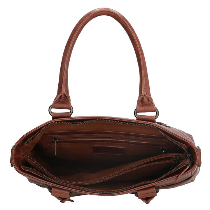 De tas heeft een ruim hoofdvak met ritssluiting. Intern heeft de tas een smartphonevakje, een verdeler met ritssluiting en een binnenvakje met ritssluiting, handig voor de wat kleinere spullen. Ook heeft de tas een voorvak met ritssluiting, een voorvak met magneetsluiting en een achtervak met ritssluiting. Doordat de tas zoveel vakken heeft kunt u gemakkelijk uw spullen gescheiden houden. Het Micmacbags logo is mooi verwerkt in het leer. De afmeting van de tas is 32 x 28 x 10 cm.