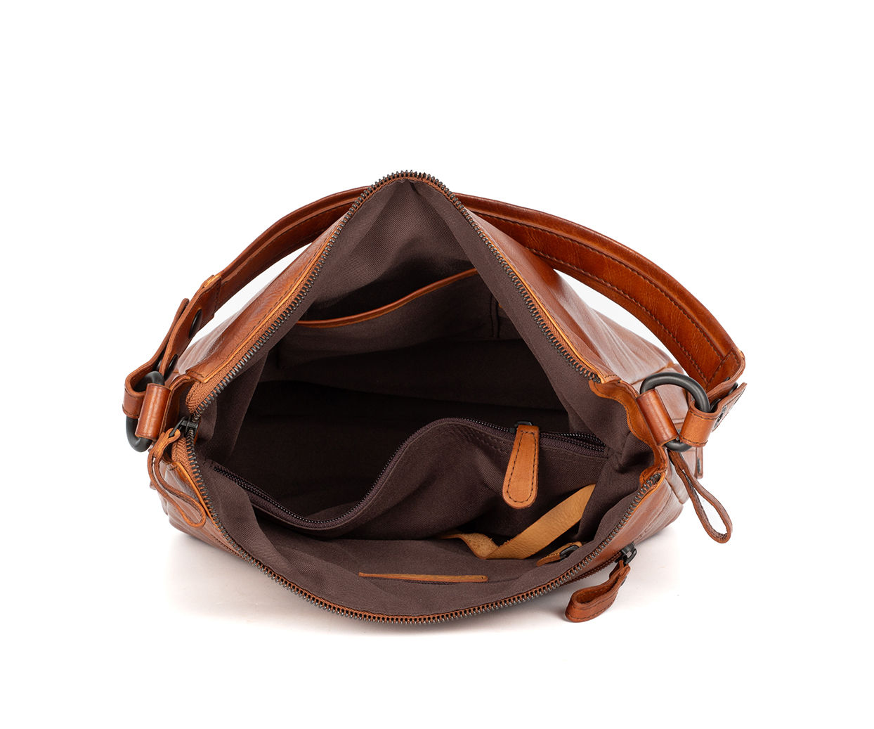 • Ruime leren schoudertas