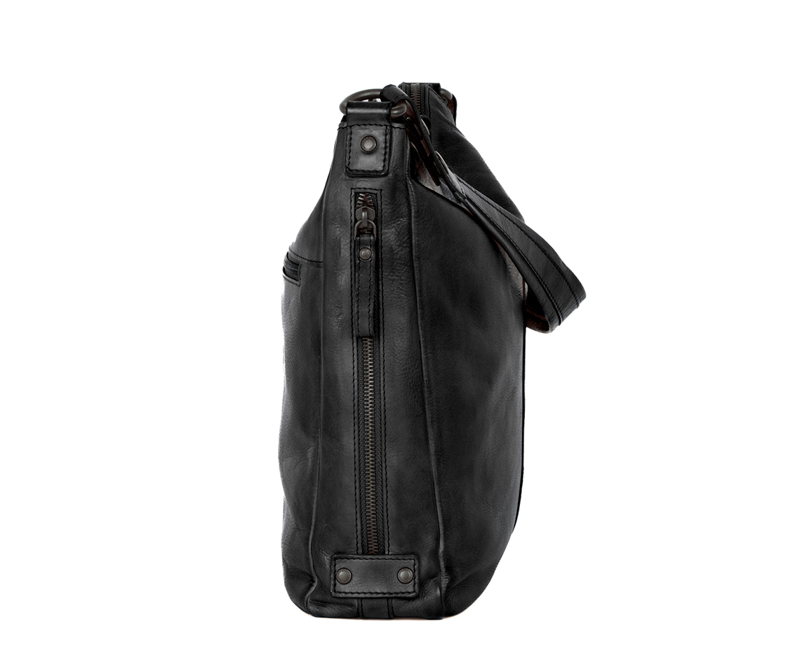 Een verticale rits aan de zijkant geeft de tas een extra stoer detail en
