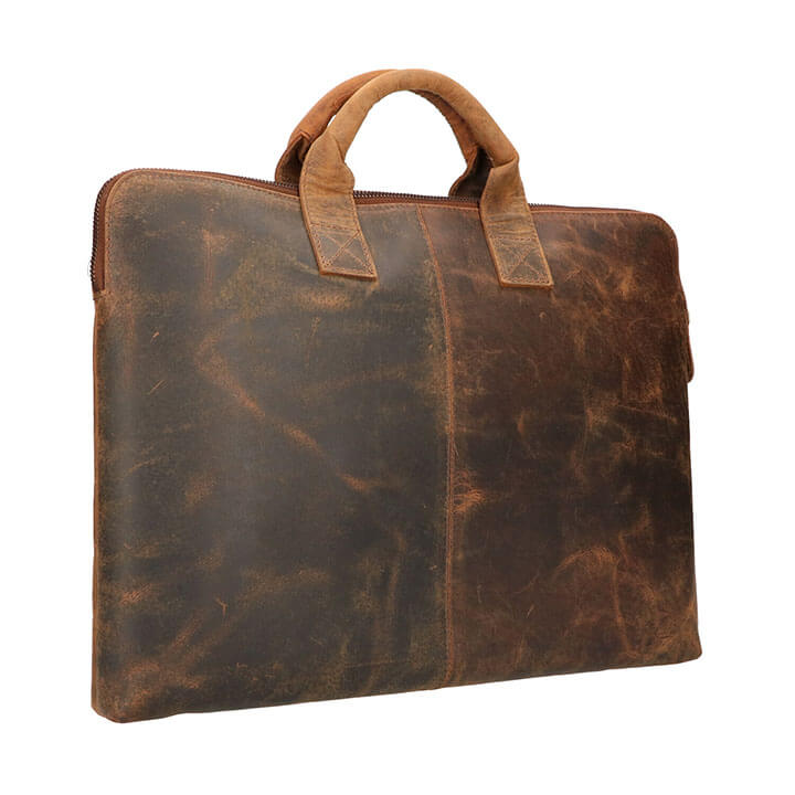 De Jazz is een prachtige echt leren Laptop Sleeve van The Rat Pack by Orange Fire. De tas is gemaakt van hoogwaardige kwaliteit leer, het leer is lichtgewicht en stevig. De tas beschikt over een ruim hoofdvak met ritssluiting, het hoofdvak is gevoerd met prachtige jeans. Aan de binnenzijde heeft de tas in het gewatteerd laptopvak 17”, een steekvak en een penvakje. Deze tas is ideaal als werktas omdat er een laptopvak in zit en A4 papieren er gemakkelijk in passen. De Jazz tas neem je gemakkelijk met de 2 handvatten op de bovenzijde. De tas is 43.5 x 30 x 4.5 cm.