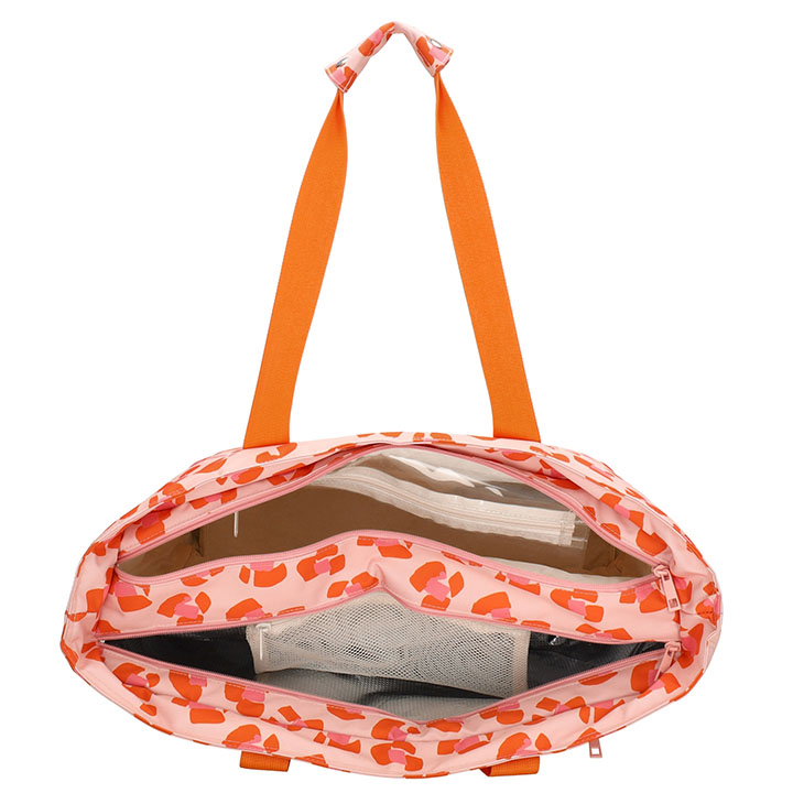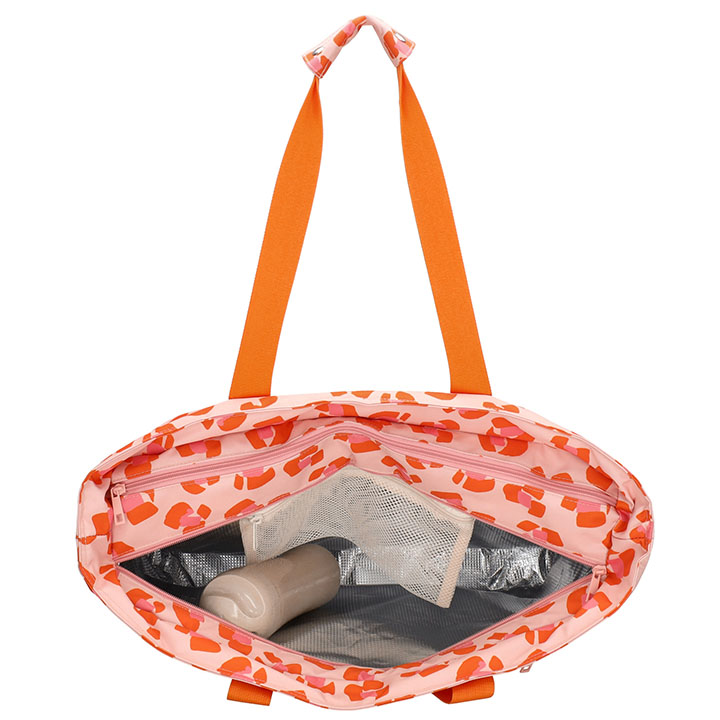 De tas beschikt over twee hoofdvakken met elk een eigen functie. Het geïsoleerde koelvak houdt jouw drankjes en snacks heerlijk koel, terwijl het andere vak met diverse opbervakje en natgoedvak ideaal is voor vochtige handdoeken of zwemkleding. Daarnaast biedt de tas twee handige ritsvakken aan de voor- en achterkant voor items die je snel bij de hand wilt hebben.
